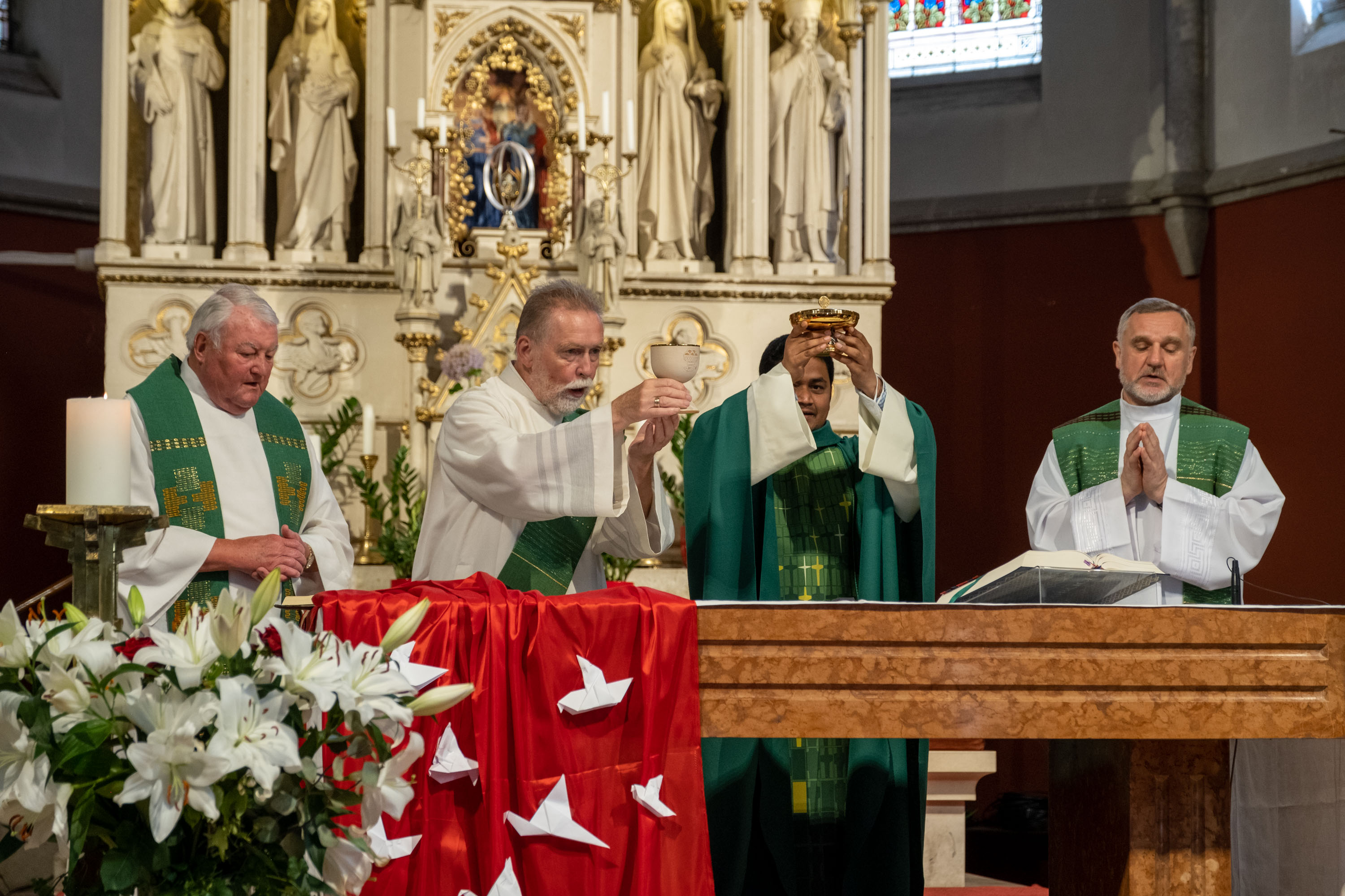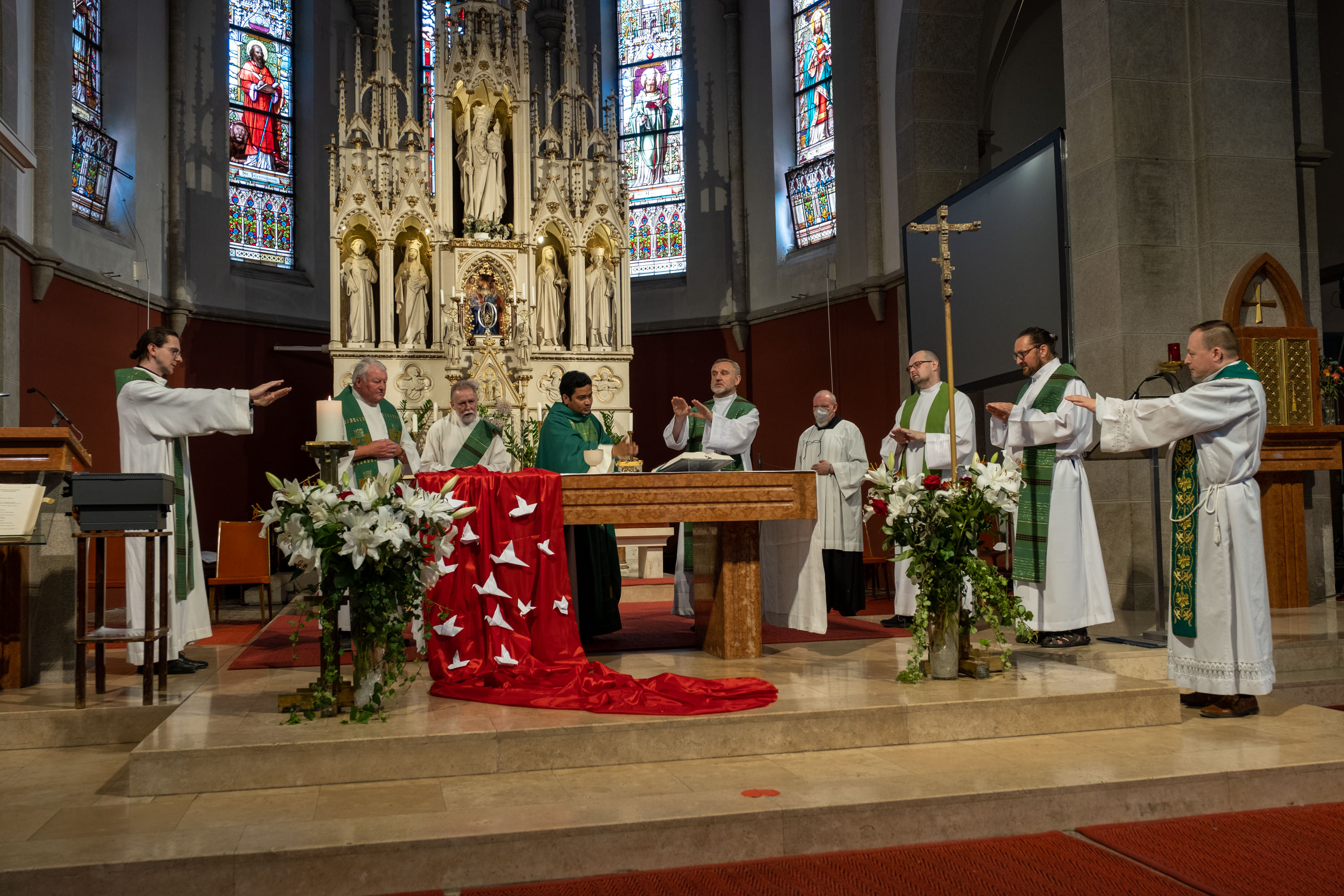 Die Festmesse leitete Pfarrer Suresh in Konzelebration mit unseren Lazaristen, Pfarrer i.R. Norbert und Diakon Toni, viele kfb-Frauen und auch einige Männer feierten gemeinsam mit ihnen.