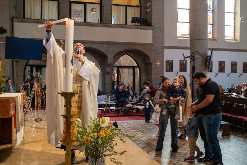 Die Menschen glaubten an den auferstandenen Jesus Christus – und als Zeichen der Annahme dieses Glaubens wurden sie getauft. Seit vielen Jahren ist eine an der Osterkerze entzündete Taufkerze für jeden Christen ein Zeichen dieser Taufe. In diesem Gottesdienst wurden mitgebrachte Taufkerzen an der Osterkerze 2026 wieder entzündet.
