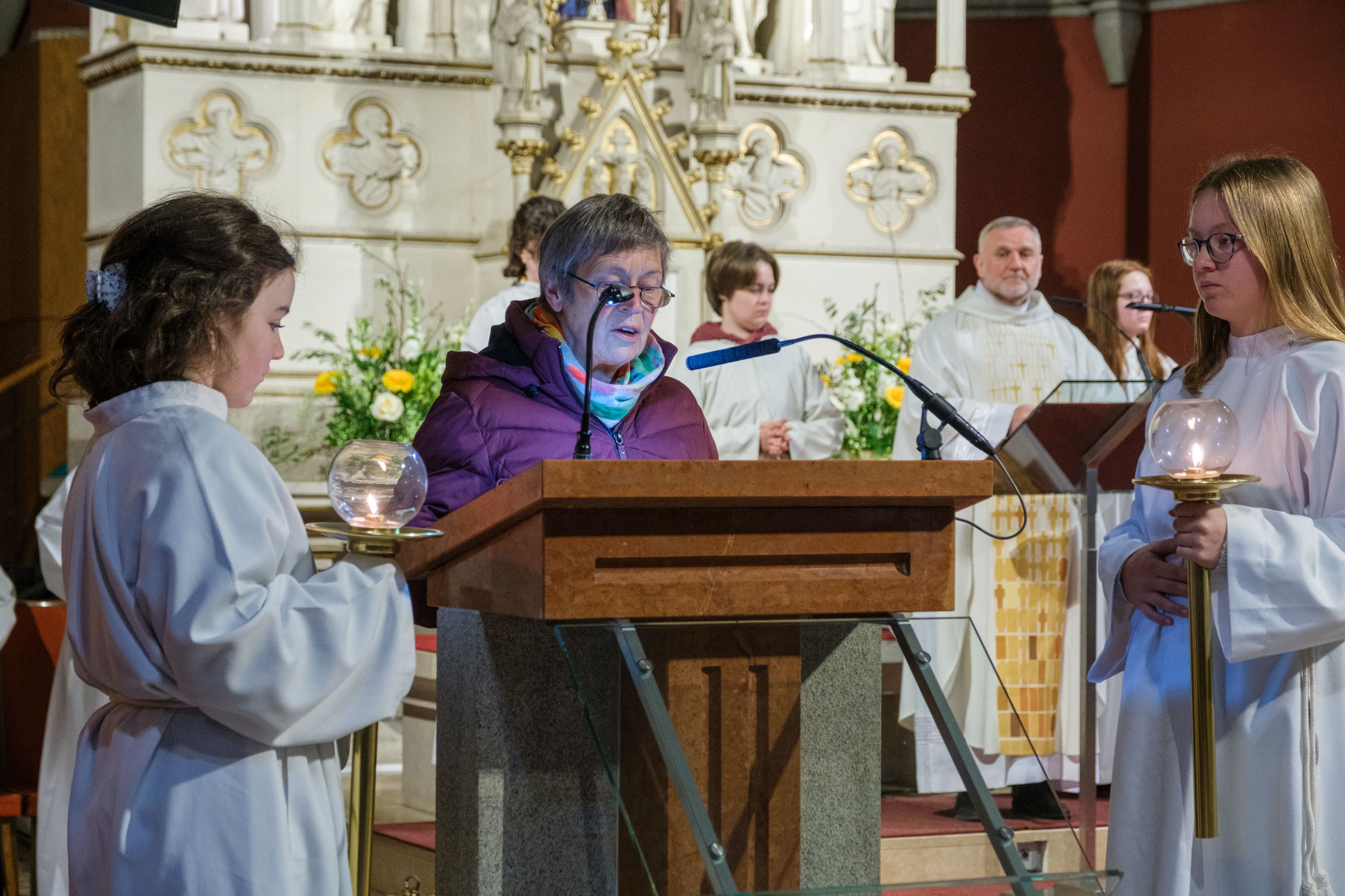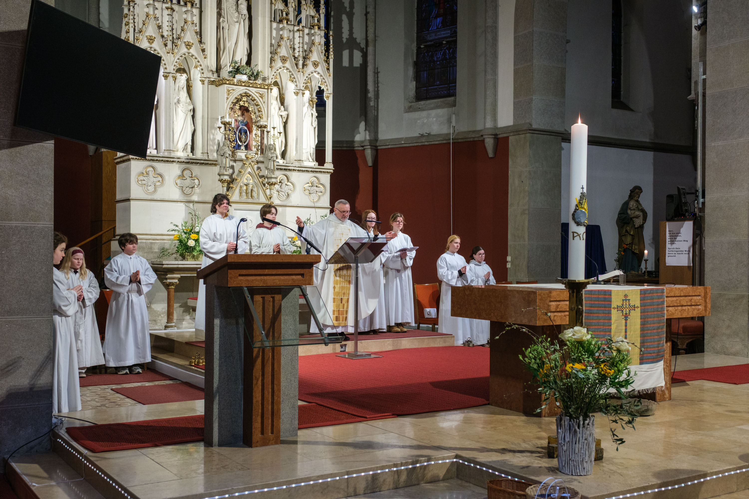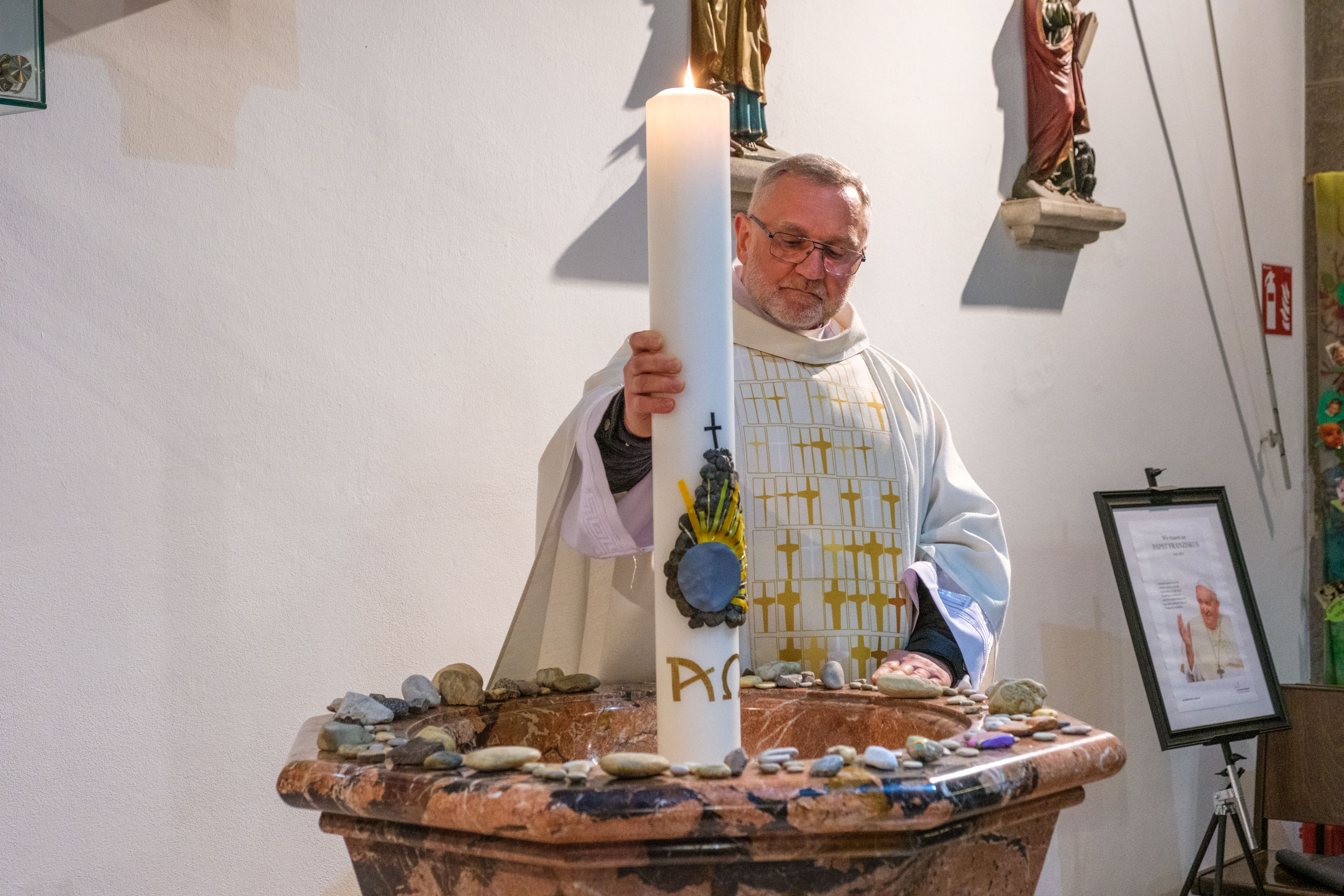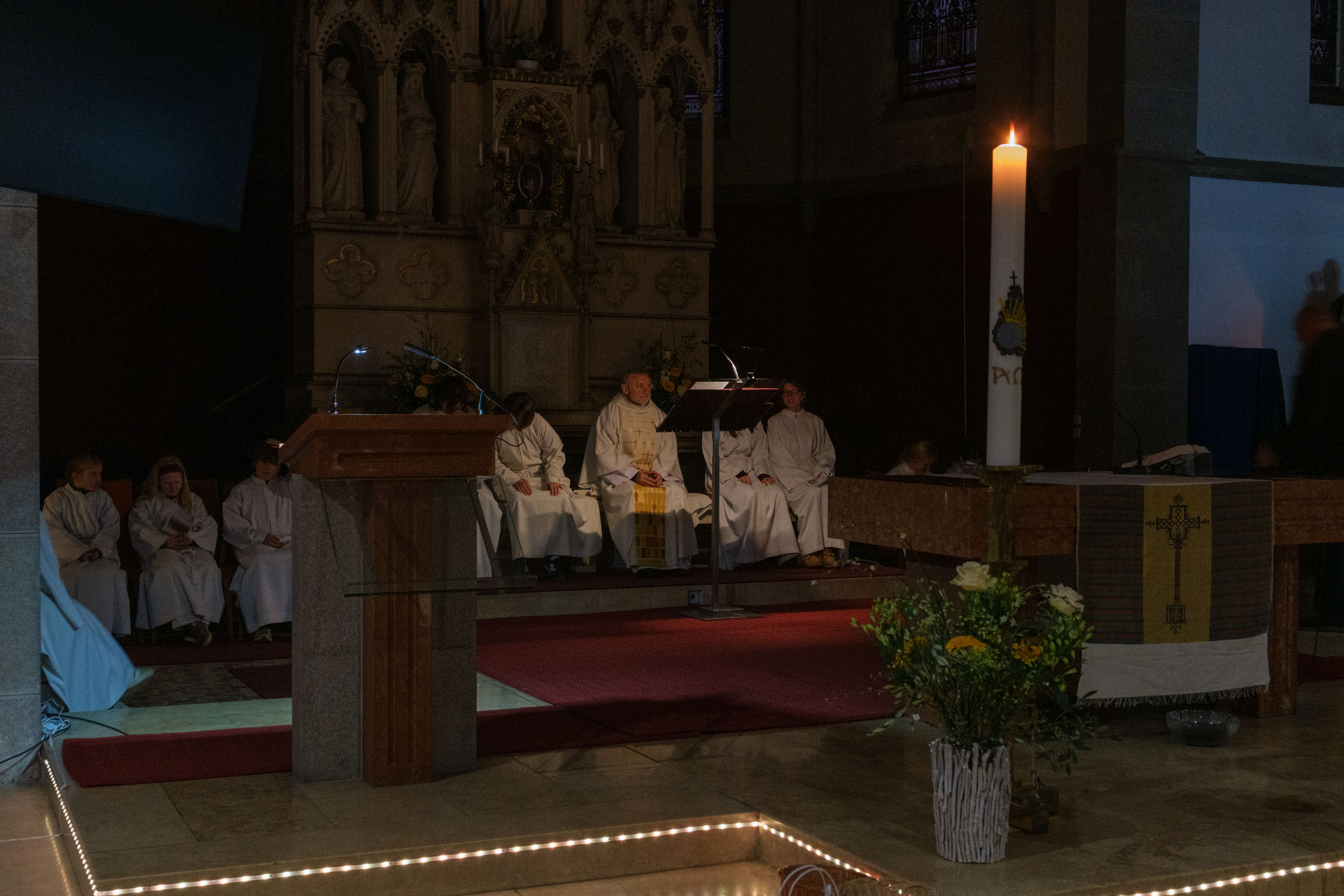 Die Osterkerze als Christus das Licht. Texte aus dem Alten Testament erinnern an den schon lange bestehenden Bund zwischen Gott und den Menschen.