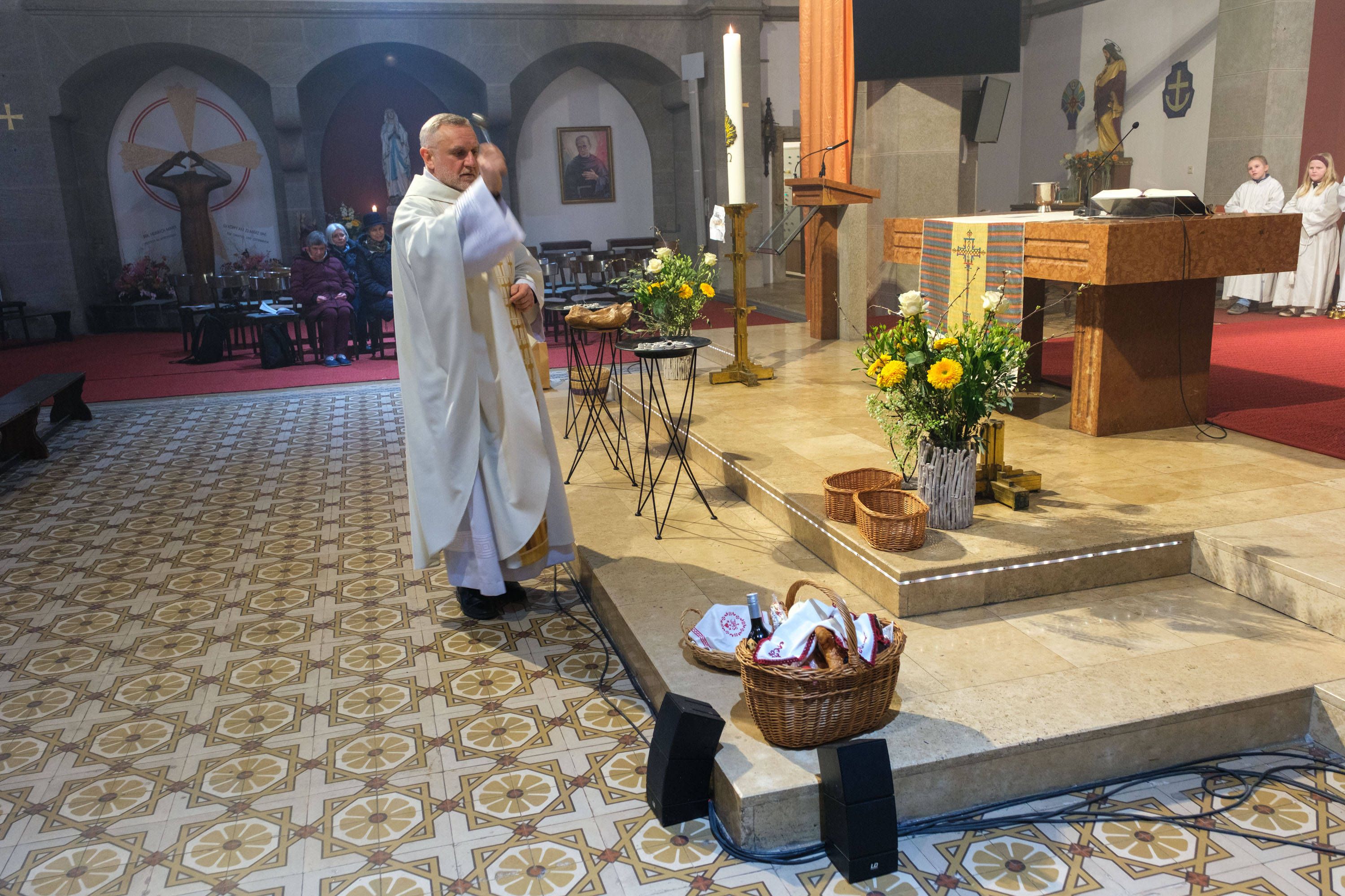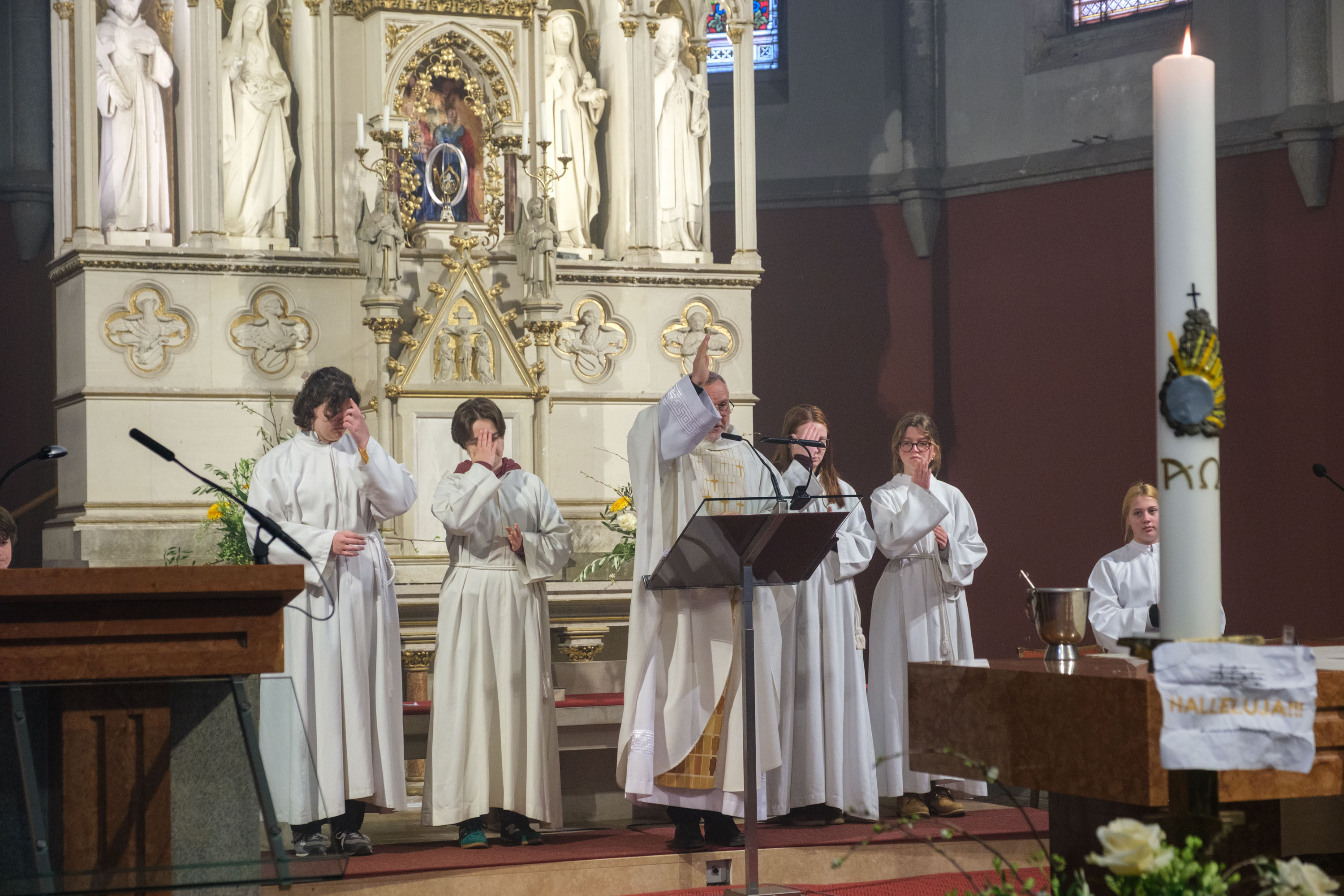 Das Evangelium berichtet über die erste Begegnung mit dem auferstandenen Jesus. Erinnerung an die Taufe. Die erste Eucharistiefeier seit Gründonnerstag.